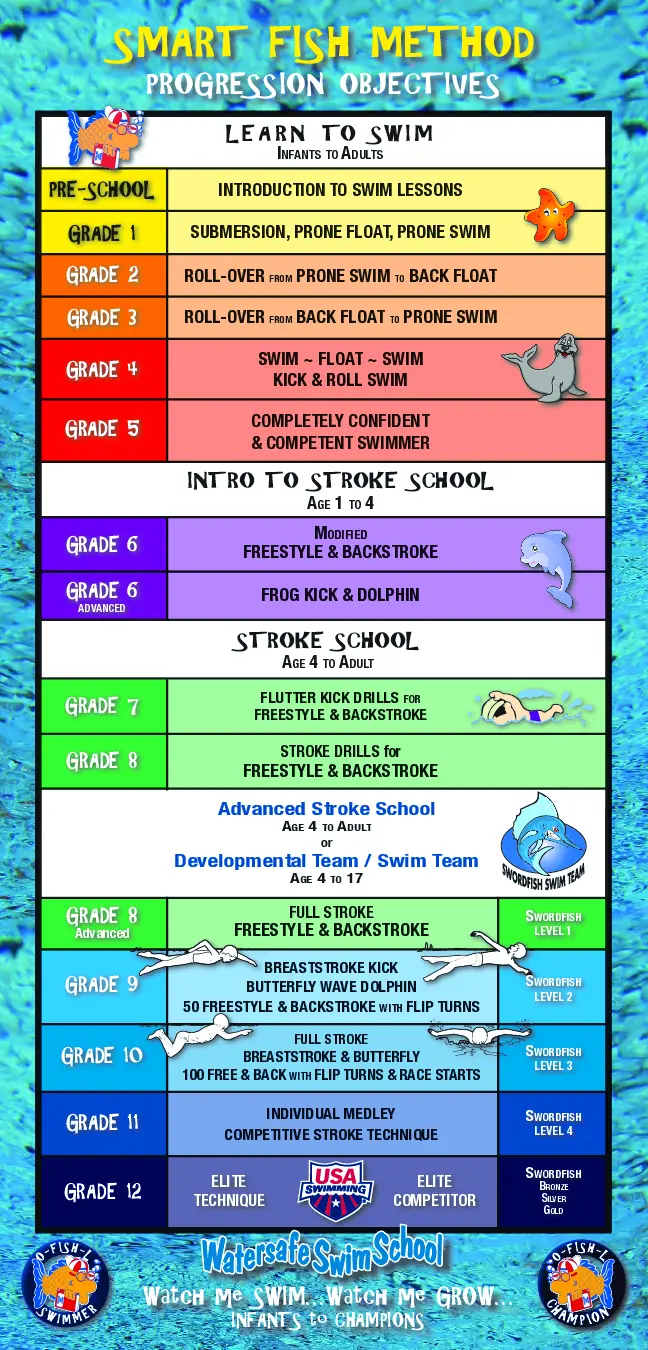At Watersafe Swim School, we believe that aquatic safety should be taught using the same concepts, strategies, and techniques you use at home. Small steps taught with great love can change a young child’s world. As your baby grows, they will learn to roll over before they crawl and crawl before they can walk.